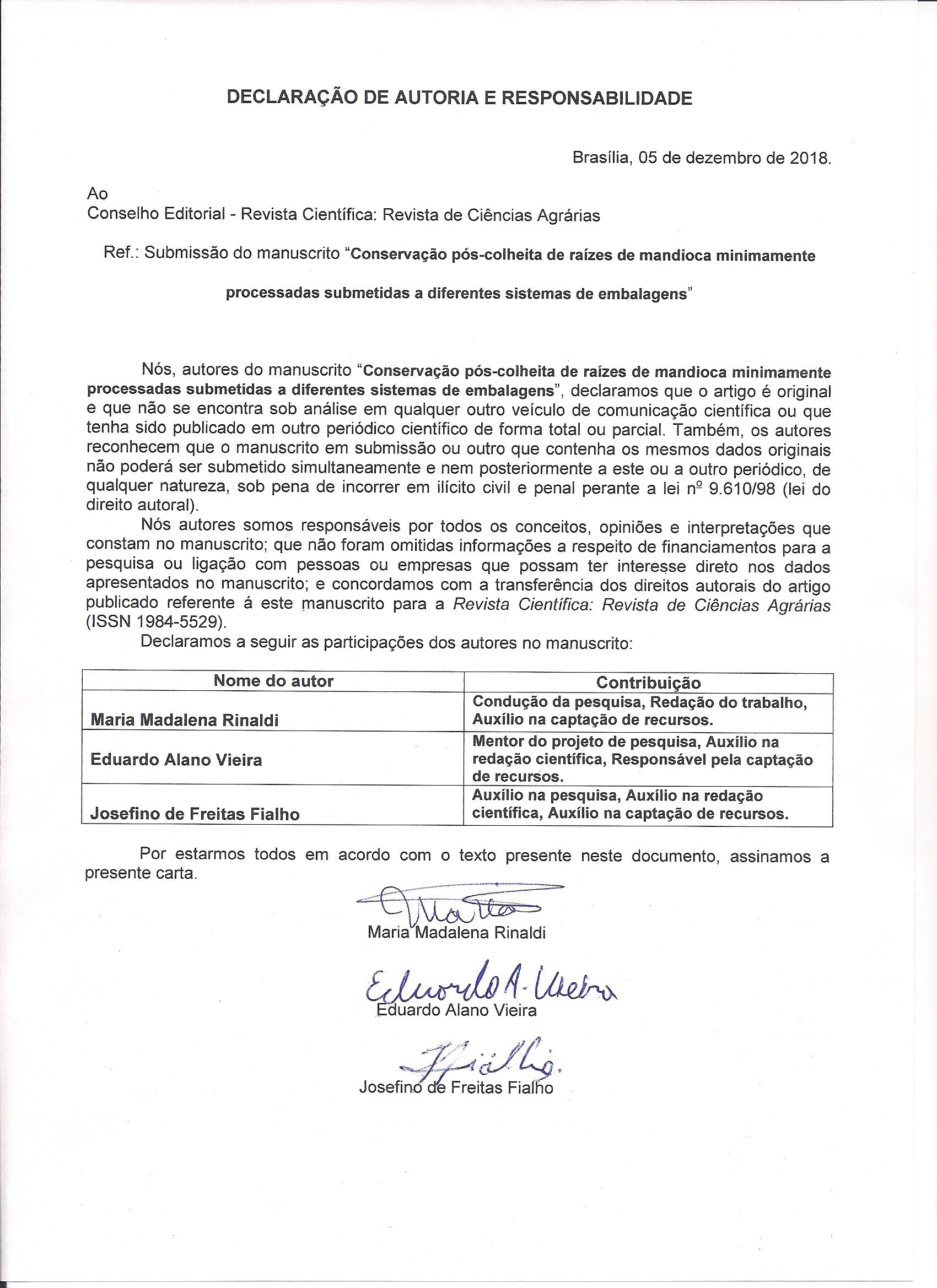 Postharvest conservation of minimally processed cassava roots subjected to different packaging systems